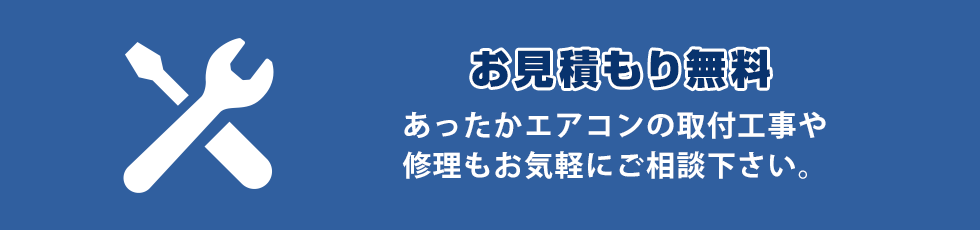 ※200V幹線切り替え工事、分電盤工事、冷媒管延長などの追加工事が必要な場合は、別途お見積させていただきます。